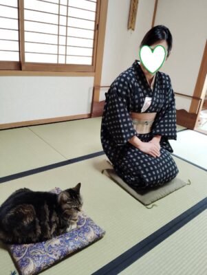 今日は、午前中はアミが茶室に居座り、Iさんがツーショットを望まれたので、撮影しました。