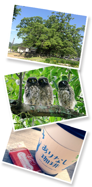 樹齢千年の大木の前で飲む珈琲は味わいがあるのかな・・・ダメ元で珈琲を飲みに行った先で、自然の中にいるアオバヅクを見る事が出来、大感激!!!