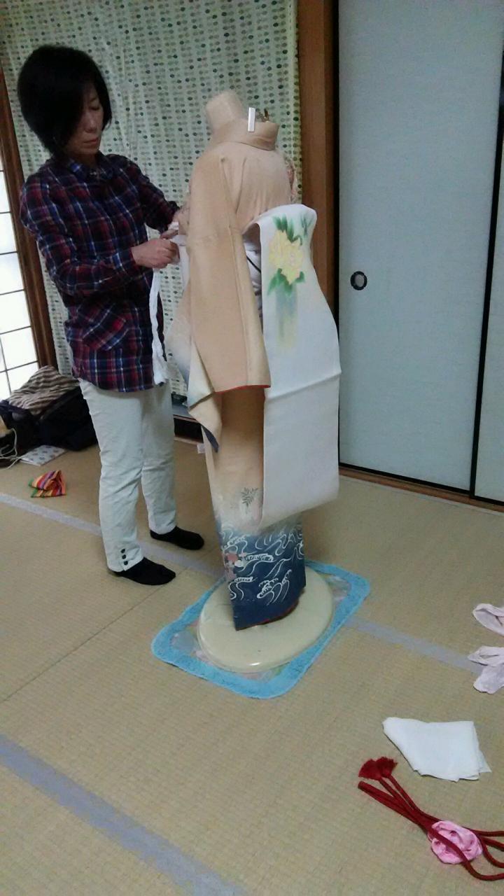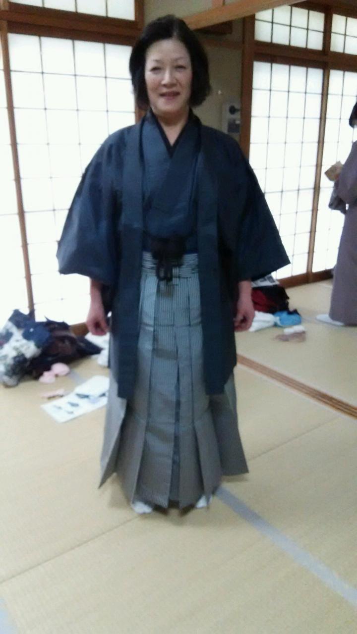 すごく女性らしい若嶋さんが、男性衣裳着付けの練習をされ、三恵子さんが上手に着せられましたので、