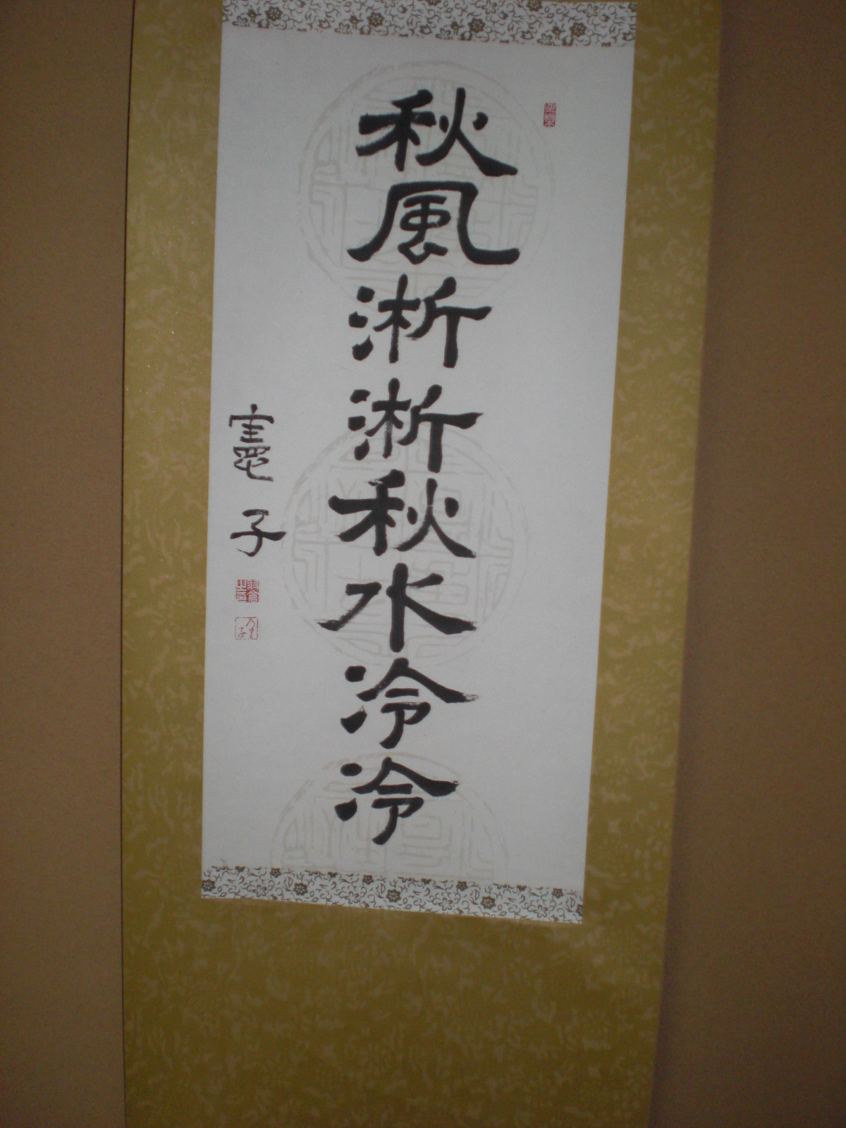 今日は、台風が関西を通過すると言われている中、お稽古を強行致しましたが、午後から来られる予定の前川さんだけが、鼓が滝駅周辺道の灌水の為、我が家まで辿り着けず、結局引き帰さざるを得ず、とても気の毒な事になってしまいました。