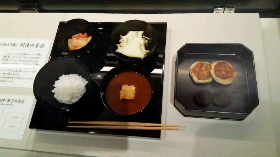 DSC_0486                 当時の茶事の懐石(一汁三菜)と菓子