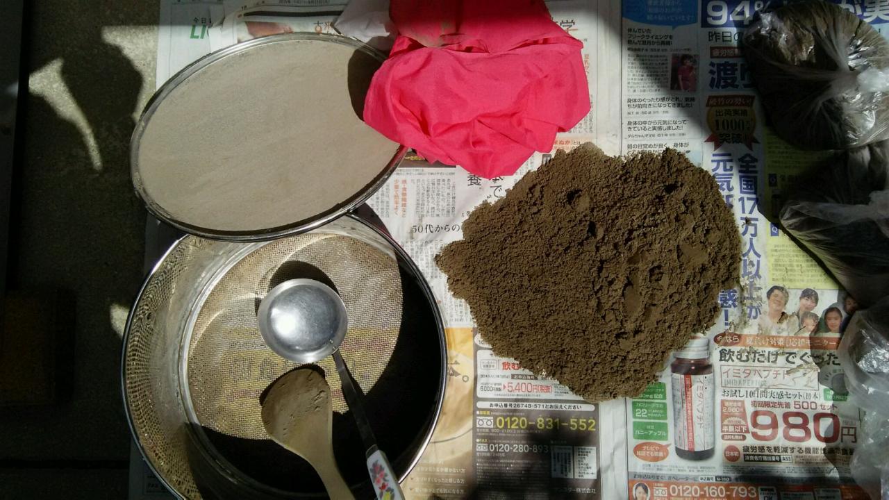 一昨日から、炉灰を洗ってあくを除き、水分を飛ばして、ベランダに広げ、半乾きにして、準備が順調に出来ていました。