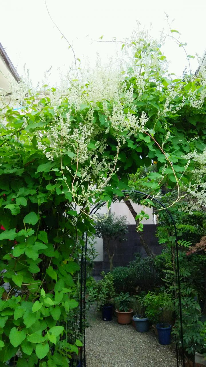 又、晩夏に咲いてくれる、『夏雪葛』が、アーチに添って、とても見事に綺麗です。