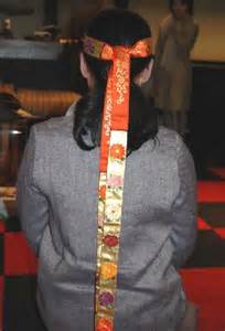 能楽資料館では色々な役柄や、表情の面が中心に展示してあり、古代の能衣装は少しだけでしたが、鬘を押える為に頭に付ける鬘帯が、私には珍しいものとして、目に留まりました。