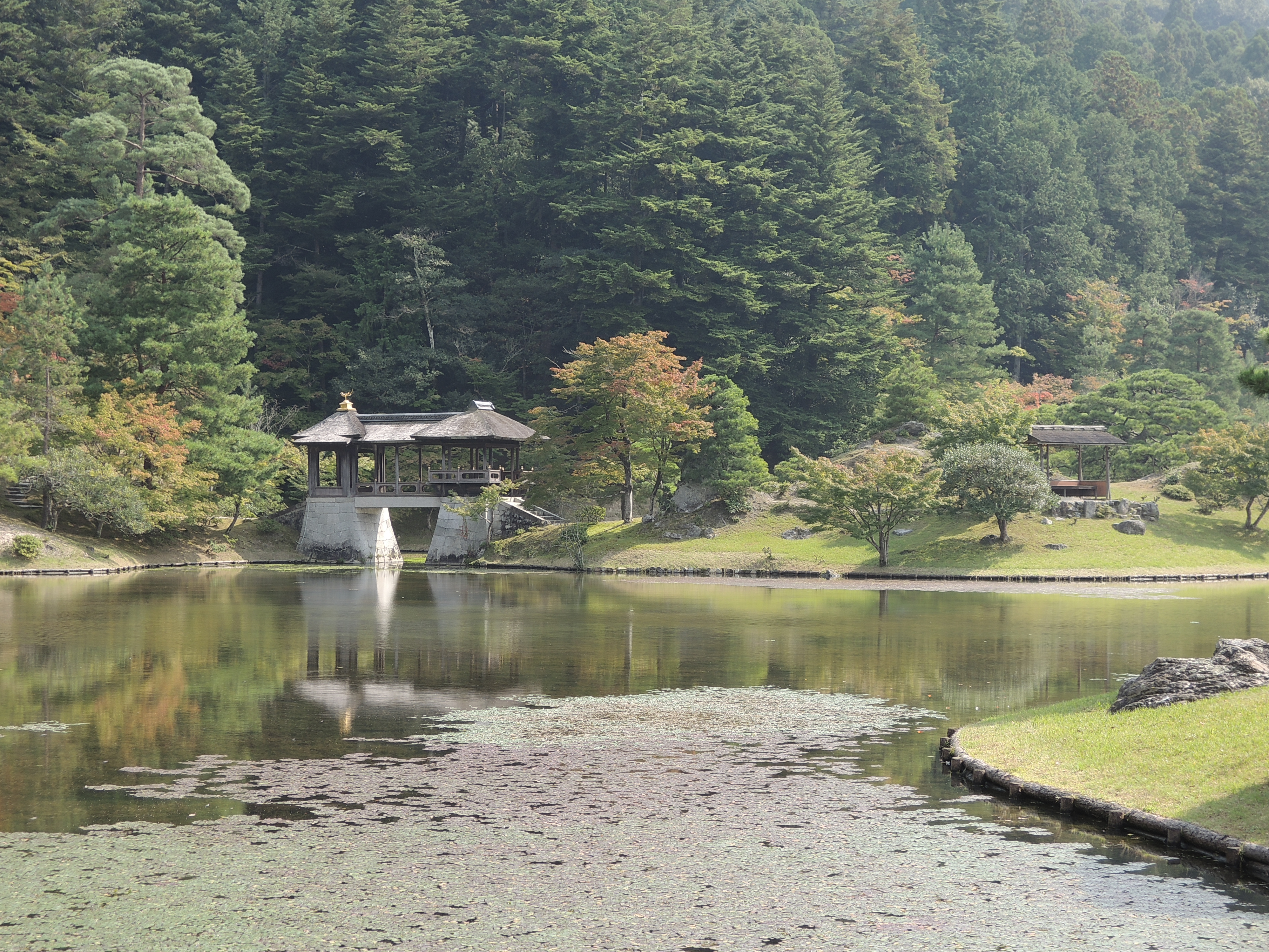 浴龍池はお舟遊びの場であり、島々を廻りながら管弦や詩歌の会などが行われました。