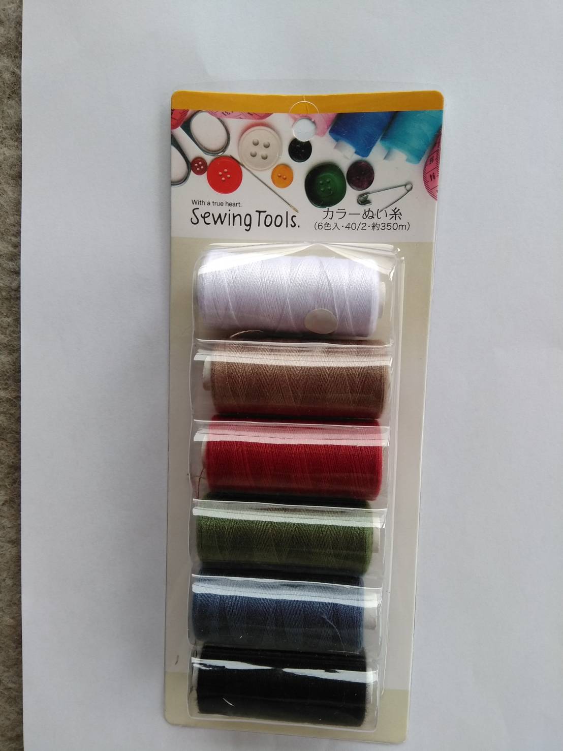しかも、近所で探してみたのですが、生地や、ゴムと同様、白糸も売り切れていて、何とか、6色入りを見つけてきました。