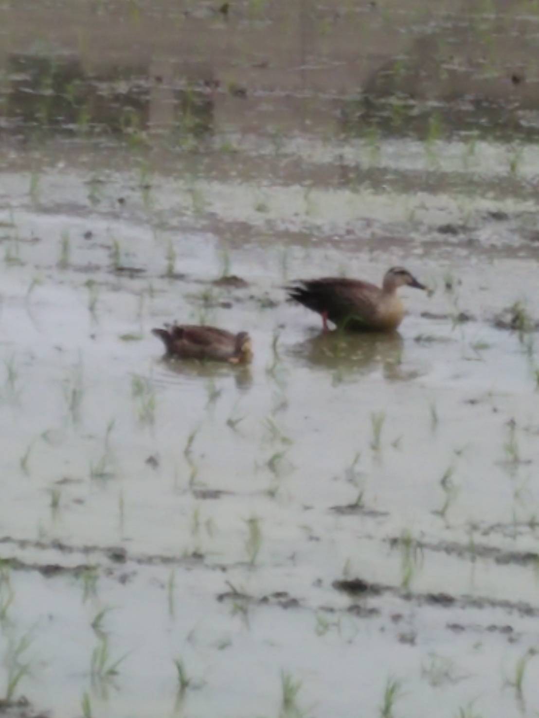 250px-Kuzusha散歩道は、出来るだけ、車の少ない狭い道を選ぶのですが、東多田2丁目にある九頭神社の前の田んぼに、昨日か今日かに、田植えをされたのか、の状態の所に、つがいの合鴨がいるではないですか。