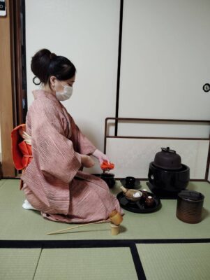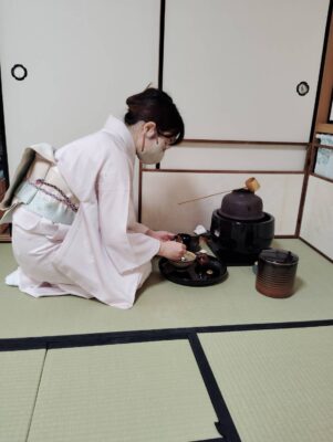 今月の研究会での内容が立礼になっているので、前もって皆さんに体験をして頂きました。