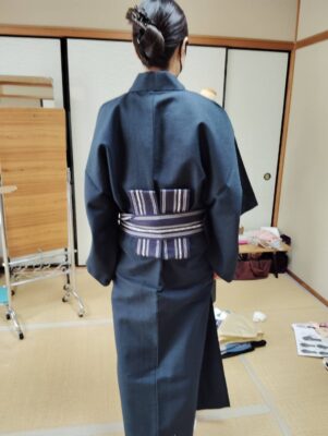 お家に衣装がある方は持参して頂き、それぞれ、モデルになったり、着付け師になったりして練習をして頂きました。