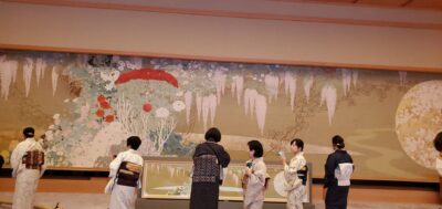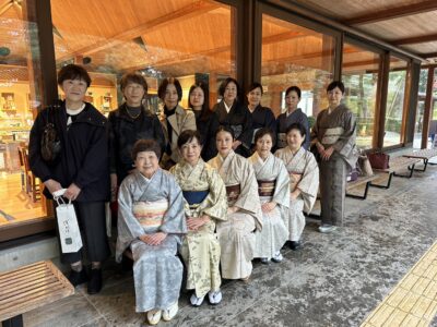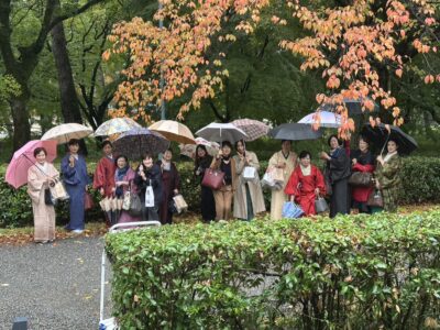 着物は諦め、洋服で参加された方もありましたが、雨に打たれた迎賓館の庭の風情もまたよかれで、参加された方達からは、素晴らしい日本の伝統品の数々を見せて頂けよかった、という感動の言葉を頂きました。