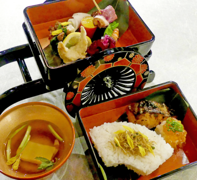 皆さん、購買意欲にかられ、それぞれたっぷりお買い物を済ませ、食堂オープン時間の11時には席に着き、各自、前もって決めていたお品の【御所車御膳】を頂きました。